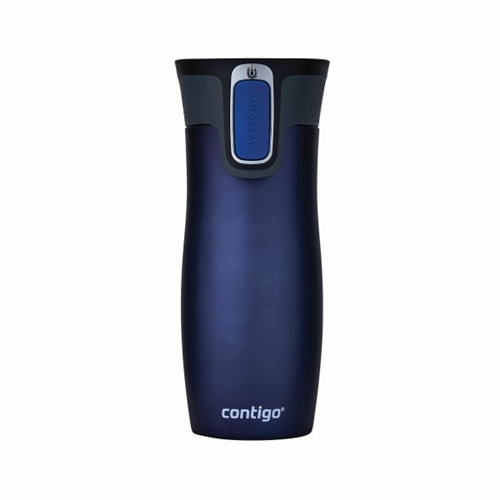 The Contigo West Autoseal travel mug is a stainless steel vacuum flask, perfect for hot and cold drinks while out and about, or near electrical items such as laptops, where spillage would be a problem. With a generous capacity of 470ml, the mug features an easy to clean lid made from BPA-free plastic. This leak-proof tumbler is supplied in a sleek Monaco blue finish with stainless steel interior and embellishment around the button. Keeping drinks hot for up to five hours and cold for up to 12 hours, the Contigo West travel mug is 100% spill-proof and the convenient button lock provides added security.