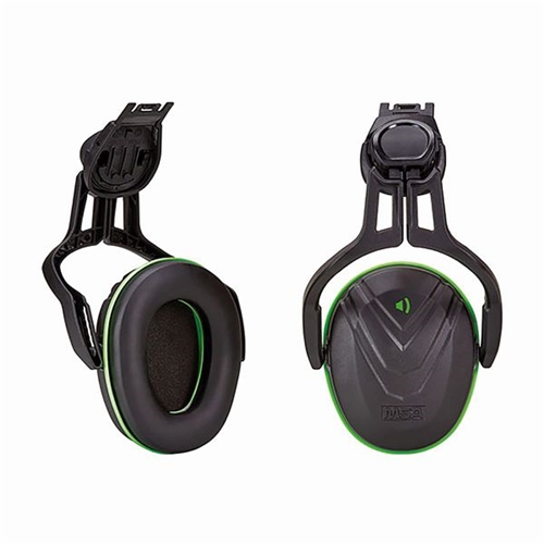 The MSA V-Gard helmet mounted ear defender low is designed for industrial workers. The V-Gard Helmet-Mounted Hearing Protection Line delivers enhanced comfort and premium performance with upgrades in fit and style without compromising the quality. These passive helmet mounted ear defenders have a Low Attenuation of SNR 28dB with green colour coding for easy identification. Working with MSA V-Gard slotted Industrial helmets and MSA V-Gard visors and frames, the matte material on the cup and ear pads decreases look of wear and tear.