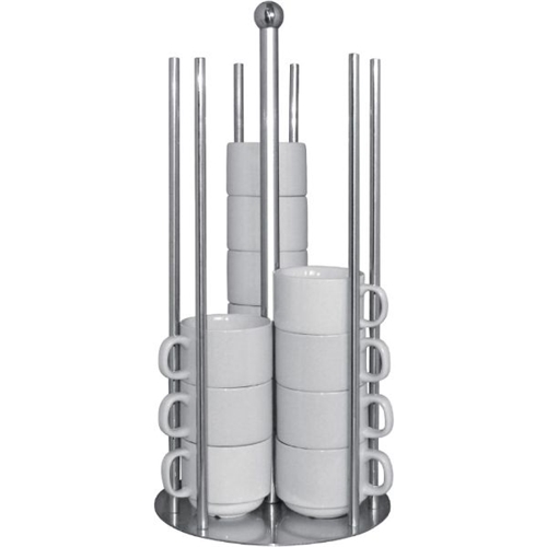 A robust, stainless steel crockery stand deisgned to store stacking cups neatly and safely, for use in buffets or in storage. The rack is supplied flat packed, ready for easy self-assembly.