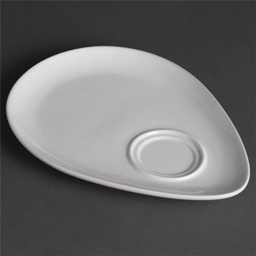 This snack plate from Olympia is highly versatile, with a soft rolled, chip resistant edge and fully vitrified body. This gives the plate great heat and shock resistance and ensures glaze durability, meaning it will stand the test of time in a busy catering environment. Ideal for use in hotels, restaurants, buffets or cafes where a durable crockery range is required. The extended section allows snacks and cakes to be served. Fits CB461 mug and CB462 cup.