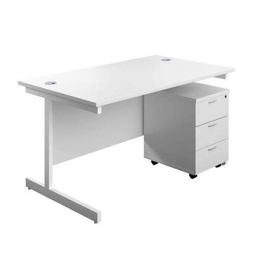 1400X800 Single Upright Rectangular Desk White-White + Mobile 3 Drawer Ped
