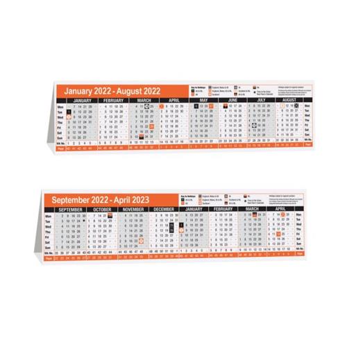This handy 16 month desk calendar features January to August 2022 on one side, and September 2022 to April 2023 on the other, for long term planning. The handy design comes flat and folds into a triangle for convenient desktop use. This calendar measures 280 x 80mm.