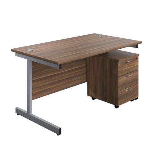 1600X800 Single Upright Rectangular Desk Dark Walnut-Silver + Mobile 3 Drawer Ped