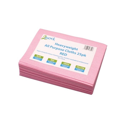 These large, heavy duty cloths are tough enough for a variety of cleaning tasks. They are treated with an antibacterial agent to provide an extra hygienic clean and come in red for an easy colour-coded system. They can be laundered and re-used as required and are ideal for healthcare and food environments.