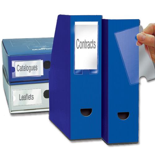 For quick and easy labelling of ring binders, letter trays, box files, magazine racks etc