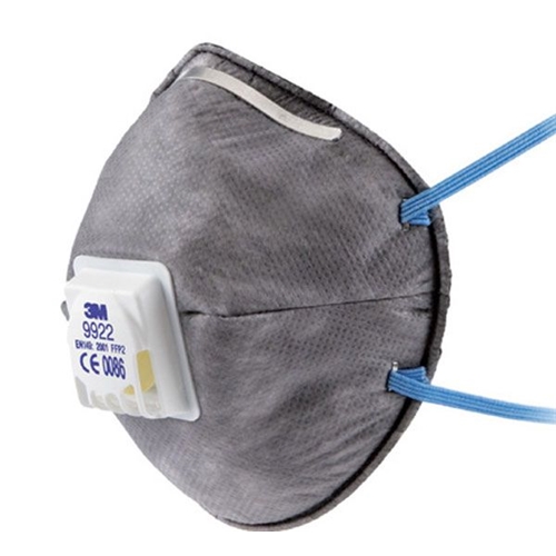 3M 9922 Particulate Respirator provides relief from nuisance levels of organic vapours and respiratory protection against moderate levels of fine dusts and mists. Reliable, effective protection against fine particulates. Activated carbon layer offers relief from the irritation of low levels of organic vapours, often present alongside particulate hazards e.g. solvents, degreasers and resins. Up to 10 xWEL against respiratory hazards generated during welding such as welding fume and ozone gas, durable collapse resistant inner shell, good fit over a wide range of face sizes provided by convex shape, nose clip and twin-strap design. Comfortable, lightweight off-the-face design. 3M Cool Flow Valve reduces heat build-up to offer comfortable protection, particularly in hot and humid conditions. Blue colour coded straps denote FFP2 protection level. Standard: EN149:2001 FFP2. Approval: CE Marked, maximum use concentration: Particulates: 10 xWEL and below WEL for organic vapours.