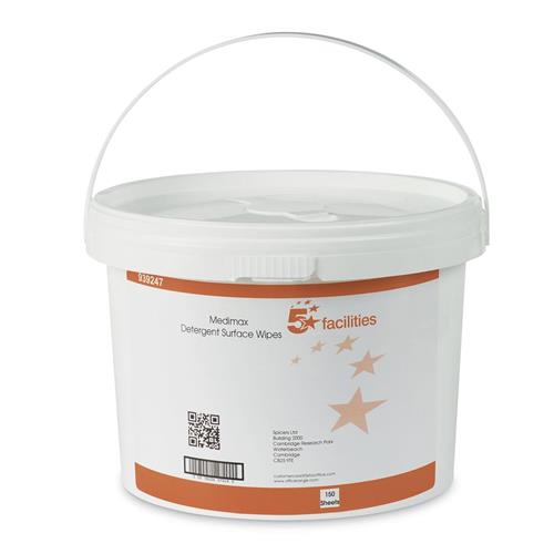 5 Star Facilities Medimax 70 per cent IPA Surface Wipes Anti-bacterial 28gsm 28x28cm [Tub 150 Sheets]