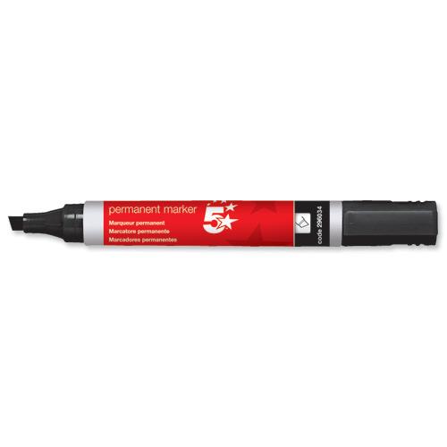 5 Star Office Permanent Marker Xylene/Toluene-free Smearproof Chisel Tip 1-4mm Line Black [Pack 12]