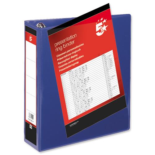 5 Star Office Presentation Ring Binder Polypropylene 4 D-Ring 65mm Size A4 Blue [Pack 10]