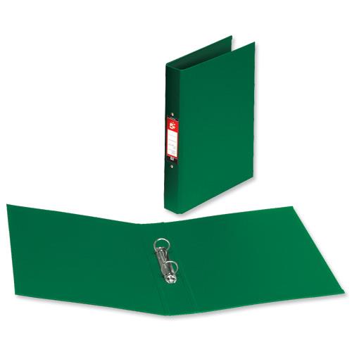 5 Star Office Ring Binder 2 O-Ring Size 25mm Polypropylene A4 Green [Pack 10]