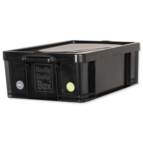 50 L Really Useful Storage Box Plastic Recycled Robust Stackable 50 Litre W440xD710xH230mm Black Ref 50L