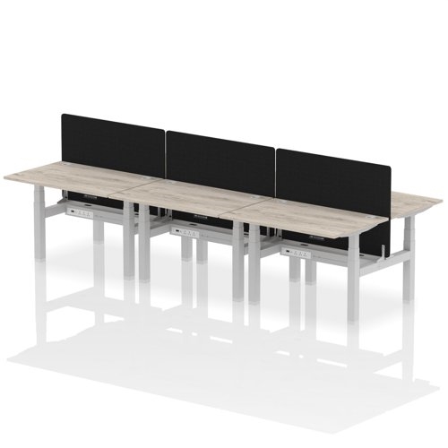 Air Back-to-Back 1200 x 800mm Height Adjustable 6 Person Office Bench Desk Grey Oak Top with Cable Ports Silver Frame with Black Straight Screen