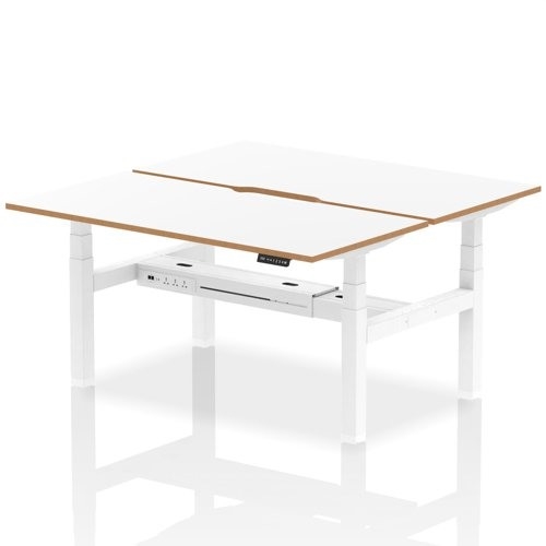 Air Back-to-Back Oslo 1600 x 800mm Height Adjustable B2B 2 Person Office Bench Desk White Top Natural Wood Edge White Frame