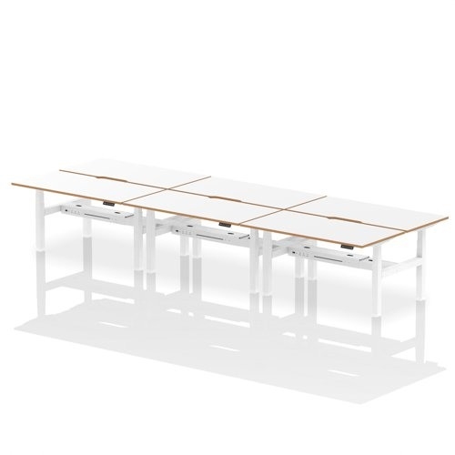 Air Back-to-Back Oslo 1600 x 800mm Height Adjustable B2B 6 Person Office Bench Desk White Top Natural Wood Edge White Frame