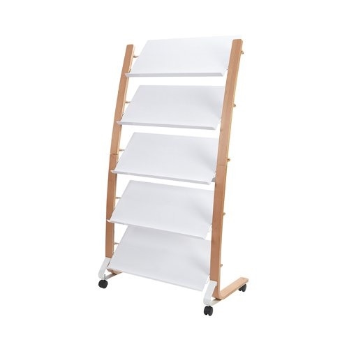 The modern and stylish display stand on wheels is the ideal solution for stylishly displaying magazines or brochures in your reception area. With its 5 compartments, each 4cm deep, you will be able to display a wide range of document sizes and formats. With its robustness and durability, the wooden document display stand is designed to stand the test of time.
