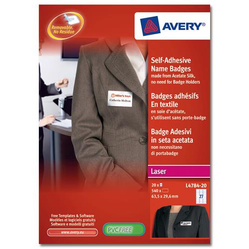 Avery L4784 Name Badge Self-adhesive Labels 63.5x29.6mm White Ref L4784-20 - 540 Labels