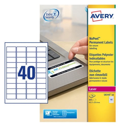 Avery L6145 NoPeel Labels Tamper-proof Durable White Ref L6145-20 - 800 Labels