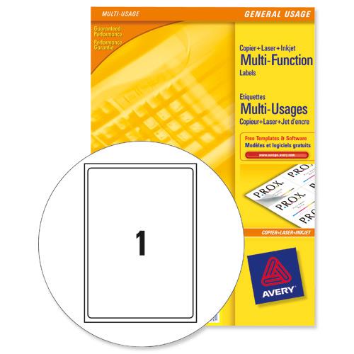 Avery Multipurpose Label Laser Copier Inkjet 1 per Sheet 210x297mm White Ref 3478 [100 Labels]