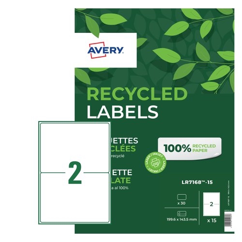 Avery Recycled Parcel Labels 2 Per Sheet White (Pack of 30) LR7168-15