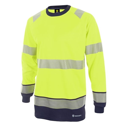 Beeswift High Visibility Two Tone Long Sleeve T-Shirt Saturn Yellow/Navy Blue M HVTT005SYNM