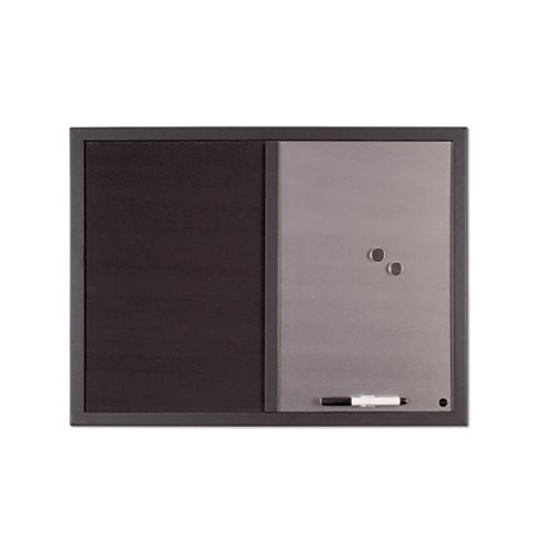 The versatility of a noticeboard combined with a whiteboard is the ideal solution for spaces where a textile board and a drywipe surface are required, but the space is limited. In essence, this is a 2-in-1 product. The black fabric surface is perfect to post notes and messages using push pins, around the office, meeting rooms, corridors, laboratories, open spaces, lobbies, and many more. In fact most spaces where notes, notices, images, photos, adverts, list and other information has to be posted for display. The silver finish magnetic drywipe surface can be used to write, erase and write again making it perfect to update information, take notes, present ideas, and many more similar actions, and its magnetic capabilities allows the use of magnetic accessories to post notes without damaging them. The product comes with wall fastening kit and can be mounted vertically or horizontally.