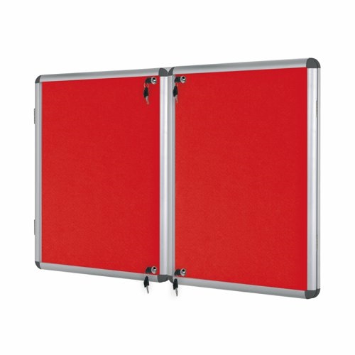 Bi-Office Enclore Display Case; Red Felt Surface; 2 Lockable Acrylic Doors; Aluminium Frame; 2430x1230mm - 40x A4