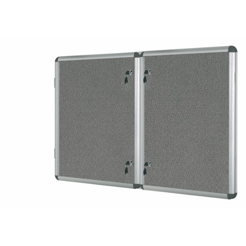 Bi-Office Enclore Fire Retardant Display Case; Grey Fabric Surface; 2 Lockable Acrylic Doors; Aluminium Frame; 1830x1230mm - 32x A4