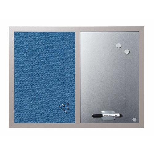Bi-Office Essentials Magnetic Combination Board; Blue Fabric And Silverfinish Steel Drywipe Surface; Pearl MDF Frame; 600x450mm