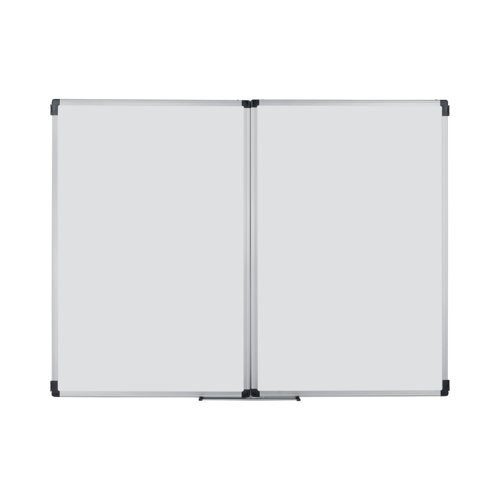 A perfect fit for teaching and learning, the Bi-Office Trio Magnetic Whiteboard is great for applying knowledge, and developing skills. The drywipe lacquered steel surface is suited for frequent use, writing, and erasing (lifespan of 10 years). You can write text, draw, or make diagrams, erase them and do it all over again. Plus, you can use magnets to display information. Efficient communication is the key to success. Explain subjects, brainstorm ideas, and be creative. Decide, plan and analyse. All in one place. This makes it a must-have item for training centres, schools, labs, and workplaces. Besides, its the most cost-effective solution. Close it to save even more room space and increase the functional area. Fix the board onto the wall with screws that go through the holes in the plastic corners. This is the simplest, sturdiest, and most robust mounting system around. The set includes a tray that is easy to attach to the board, by clipping.