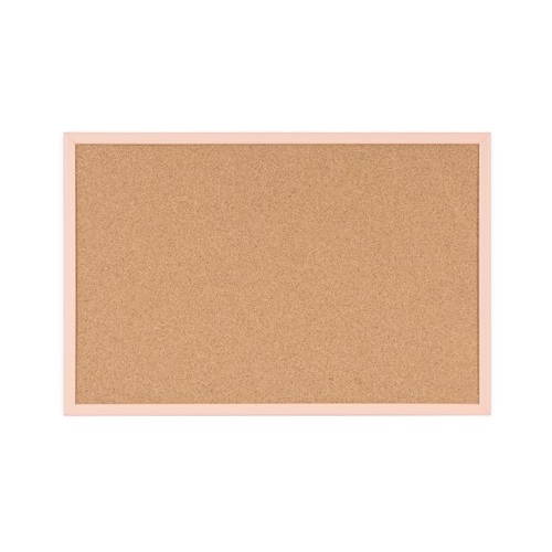 Bi-Office Pastel Cork Notice Board; 60x40cm; Cork Surface; Pastel Salmon-Lined MDF Frame
