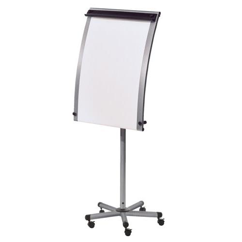 The Bi-office Roll Up Mobile Flipchart Easel features an elegant curving back, innovative rolling paper feed and sleek steel frame. The frameless magnetic dry-wipe silver finish surface is suited for frequent use (10-year warranty). You can write and draw, erase it and do it all over again. Brainstorm ideas and plan. Better explain a subject and let creativity flow. Use it as a chores board and write down memos. All in one place. You can also enhance your presentations by using magnets to display information, post notes or pictures. The writing surface is compatible with dry-wipe markers, magnets, erasers, and wipes, and includes a clip-on tray to hold accessories. This mobile flipchart easel features an adjustable pad clamp to fit any standard flipchart pad and the mobile base includes 5 locking castors for easy mobility between rooms. Ideal for office spaces and meeting rooms, the product is also durable, lightweight, and stable.