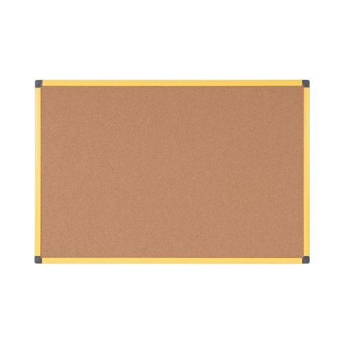 Bi-Office Ultrabrite Cork Notice Board, Yellow Aluminium Frame, 90x60cm