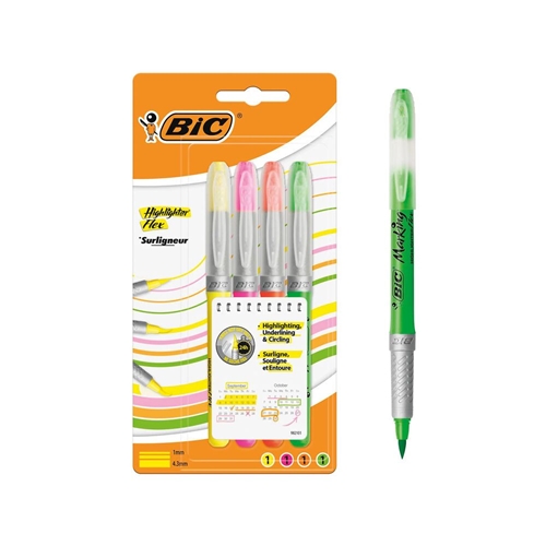 Bic Highlighter Flex Brush Tip Assorted Colours (4 Pack) 942041