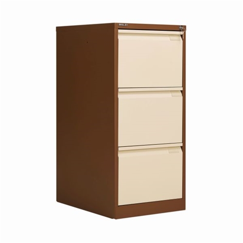 Bisley 3 Drawers Filing Cabinet Lockable 470x622x1016mm Coffee/Cream BS3EC/C