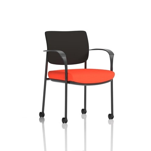 Brunswick Deluxe With Arms Black Frame With Castors Black Fabric Back Bespoke Colour Seat Tabasco Orange