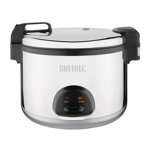 Large capacity, easy to use commercial rice cooker made from hardwearing and durable stainless steel. Ideal for busy establishments cooking large quantities of rice. Supplied with spatula, spoon and rice measure.