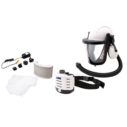 Complete respiratory protection system with head and face protection all in one Box, 180 litres of filtered air per minute. Lightweight Li-ion batteries, with a typical 8 hour usage before recharge. Complete with a P3 particulate filter and 5 pre-filters.