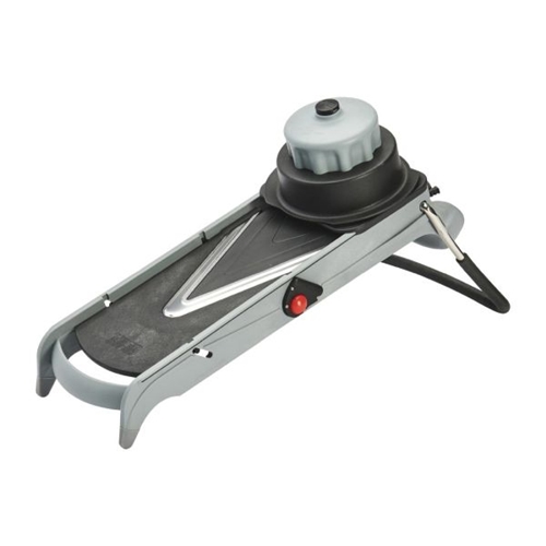 With its sturdy frame and integrated V-Shape adjustable blade, the De Buyer Viper provides flexibility, allowing you to cube, slice, julienne and diamond-cut foods smoothly and to your required thickness. For safety, the mandolin includes a pusher/slider which also promotes user comfort during use. And once you're all done, the whole unit is easy to fold away for simple storage.