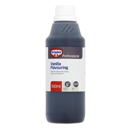 Dr. Oetker's professional vanilla flavouring is perfect for home baking, cake decorating and desserts. The flavouring comes in a convenient 500ml bottle, and is alcohol free and suitable for vegetarians.