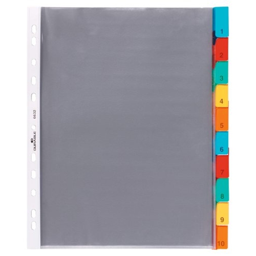 Durable 10 Part Replacable Tab Numbered Colour Coded Punched Index Divider - A4