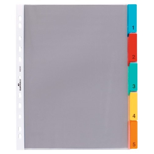 Durable 5 Part Replacable Tab Numbered Colour Coded Punched Index Divider - A4