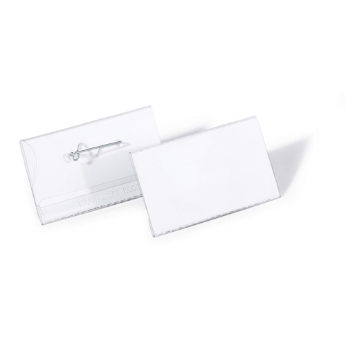 Durable Conference Pin Name Tag Badge Holders + Inserts - 100 Pack - 40 x 75mm