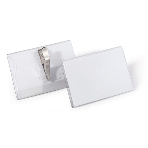 Durable Crocodile Clip Name Tag ID Badge Holders + Inserts - 25 Pack - 54 x 90mm