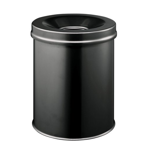 Durable Fire Extinguishing Metal Waste Bin - TUV Certified - 15L - Black