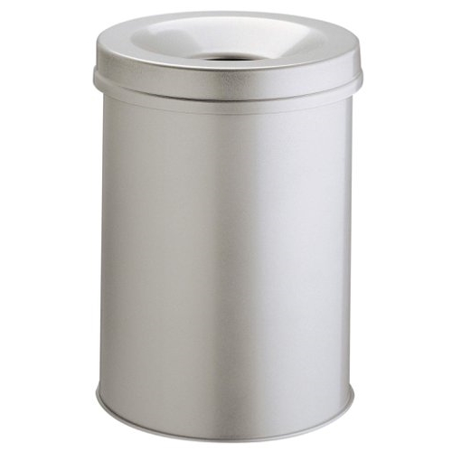 Durable Fire Extinguishing Metal Waste Bin - TUV Certified - 15L - Grey