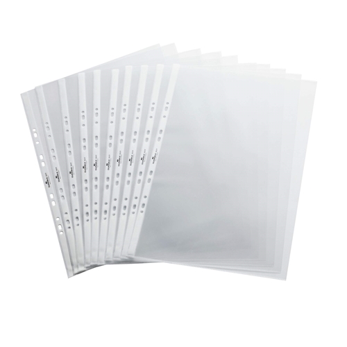 A range of transparent document punched pockets for Durable’s landscape A3 tabletop presenters. The crystal clear pockets feature reinforced holes and perforated edges for a great finish and longer product lifecycle. They have a low reflection finish with UV protection for better legibility protection against fading.