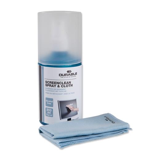Durable Screenclean Spray with Cloth Smear Free Finish Alcohol Free 200ml Ref 5823
