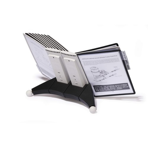 The DURABLE SHERPA® range is a stylish display panel system range with a sturdy base. Perfect for use in a showroom, office, etc. This desk unit includes 10 A4 display panels (5 Black and 5 grey) poor holding documents. The panels are anti-glare and copy-proof which makes it easy to use. Great for holding price lists, product information, frequently used telephone numbers, etc.