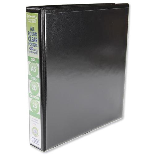 Elba Panorama Presentation Ring Binder PVC 2 D-Ring 25mm Capacity A5 Black Ref 400008672 [Pack 6]