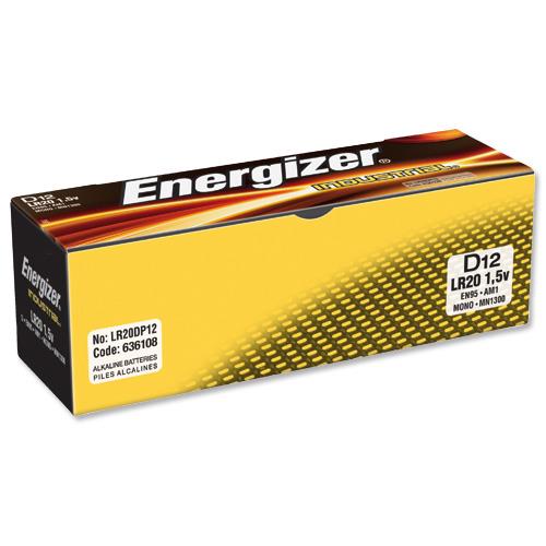 Energizer Industrial Long Life D Battery LR20 Ref 636108 - Pack 12